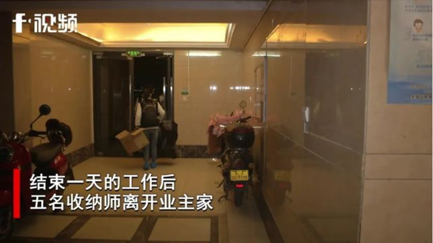 结束一天的工作后,包括苏玉峰在内的五名收纳师离开业主家。